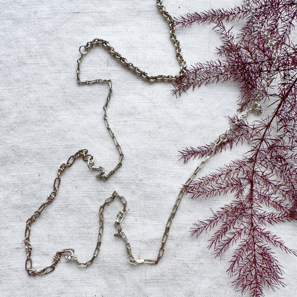 Silver Mixed Chain Necklace £55.00 Default Title - £55.00 Quantity This product is currently sold out. Please fill in the form below if you'd like to be notified when it becomes available. Sterling Silver Mixed Chain Necklace Chain Measured 26 inches All sales of sample items are final. Items cannot be returned unless faulty.