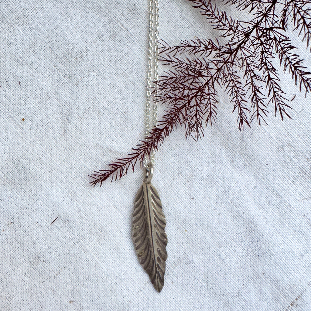 Authentic Thai Hill Tribe Silver Feather Pendant on Starling SIlverCurb Chain